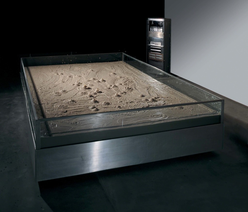 And it would be remiss not to mention Rauschenberg’s Mud Muse (1968–71), which embraces Cage’s taste for incidental music. The piece consists of a large aluminum tank holding 8,000 pounds of mud with a bass track playing underneath that would cause bubbles to rise and burst at the top of the mud pit. Here, Rauschenberg revels in the spectacle of combining art and technology with earthly refuse. His ability to animate something as disgusting as mud into music indicates a desire to revise our conception of beauty.