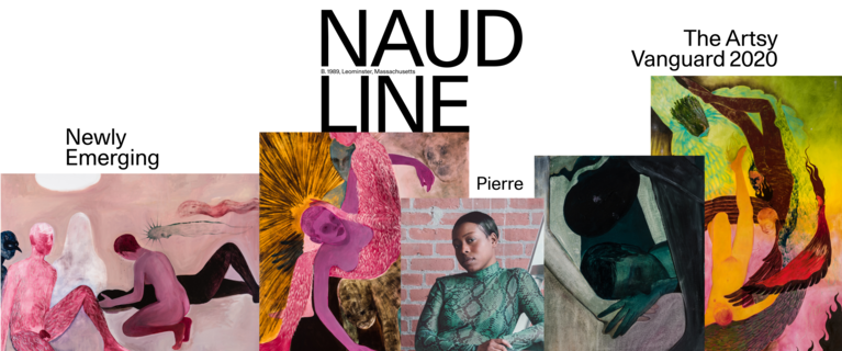 Header and thumbnail image, from left to right: Naudline Pierre, “In The Hole,” 2017. Courtesy of the artist and New Image Art; Naudline Pierre, “Blessed Are The Blessed,” 2018. Courtesy of the artist and New Image Art; Portrait of Naudline Pierre by Nathan Bajar. Courtesy of the artist and Shulamit Nazarian, Los Angeles; Naudline Pierre, “Rest Here, Rest Now,” 2018. Naudline Pierre, “Lest You Fall,” 2019. Courtesy of the artist and Shulamit Nazarian.
