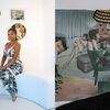 “This was before social media, so I had to find her. I called her…[and] bought a piece called Mambo. I still have it today and I will never sell it,” Comer Lowe said. “It was $250 and I paid for it over [installation] payments.” Mambo is a small abstract painting of various patterns interlocking with one another, overlaid on top of two silhouettes of Black femmes. The patterns resemble textile-based works from the South, like the quilts of the Gee’s Bend.