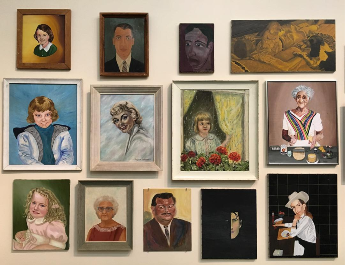 Installation view of Jim Shaw’s “Thrift Store Paintings” at the New Museum, 2016. Photo via @jenna.kowalke on Instagram.