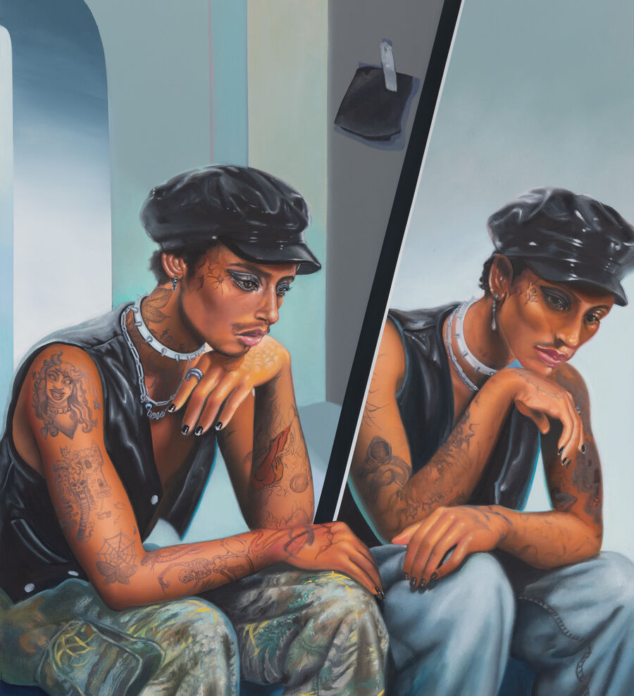 Alannah Farrell’s work portrays queer communities with work that intentionally troubles the presentation of gender. The artist opens the conversation as to how nonbinary individuals are viewed through systems of classifications. Their current show, “Serenade,” on view at Anat Ebgi through May 26th, comes at a timely moment where legislation across the United States targets the appearance and healthcare of nonbinary and trans individuals.