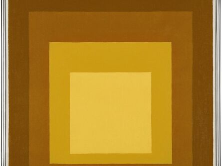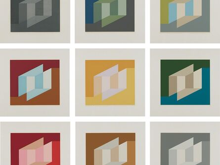 In his “White Line Squares” (often abbreviated as “WLS”) series, Josef Albers experimented with how a simple white line can transform a viewer’s perception of its surrounding colors. Building upon his iconic “Homage to the Square” designs, Albers’s “White Line Squares” showcase four nested squares with a thin white line framing one of the squares. Between 1966 and 1967, Albers developed 17 color schemes for the print series, numbered from I to XVII, and produced them in collaboration with the esteemed Los Angeles print workshop Gemini G.E.L. Each color needed to be applied separately and with incredible precision, as any mishap would ruin the visual effect of the perfect white line.