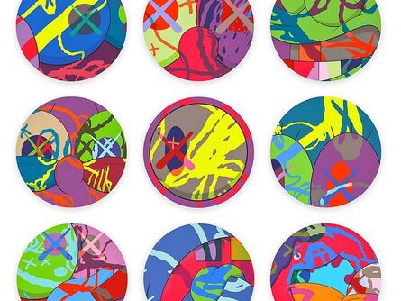 Since 2015, KAWS and Pace Prints have collaborated to release highly-anticipated limited edition prints to celebrate the art fair Art Basel Miami Beach. The prints—which sell out immediately in a tiered pricing system tied to the print’s edition number—capture the street artist’s iconic, vibrant aesthetic, mashing together deconstructed bits and pieces of childhood cartoons like Mickey Mouse, Snoopy, and SpongeBob—and KAWS’s own snake-like signature character, Bendy. The 2015 fair gave collectors the opportunity to snap up three prints depicting Snoopy titled No One’s Home, Stay Steady, and The Things That Comfort. In 2016, the duo released a playful dolphin print titled, Piranhas When You’re Sleeping. Finally, in 2017 and 2018, KAWS designed similar SpongeBob-themed portfolios that share a title, “THE NEWS.” Since their release at Art Basel Miami Beach, these print series have achieved a robust secondary market, though complete sets of each edition remain relatively rare.