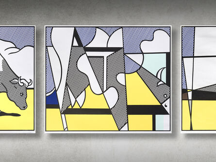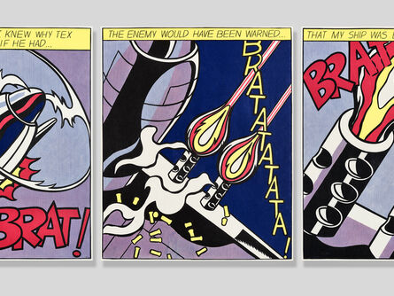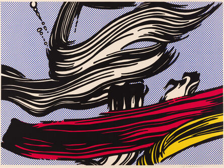Like many of the Pop artist’s works, Roy Lichtenstein’s “Brushstrokes” were inspired by a comic strip. Lichtenstein modeled his first work in the series, Brushstrokes (1965), after “Strange Suspense Stories #72,” a cartoon by Dick Giordano that depicts a frustrated artist slathering a red “X” over an unfinished painting. Lichtenstein’s recreation of the scene crops closely on the fresh crimson brushstrokes, dripping down a dotted blue canvas in the artist’s signature graphic style. In this work and in the similar “Brushstrokes” that followed, Lichtenstein offers a satirical take on the Abstract Expressionist painters, such as Jackson Pollock and Willem de Kooning, who viewed brushstrokes as symbols of personal expression. Lichtenstein caricatures this view of artmaking by presenting paint splatters as depersonalized, mass-produced cartoons. “The real brushstrokes are just as pre-determined as the cartoon brushstrokes,” Lichtenstein once declared, provocatively calling into question whether the Abstract Expressionists were ever truly as spontaneous as they seemed.