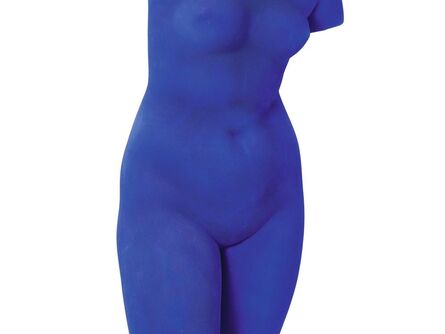 In 1955, Yves Klein had his first public showing of his monochrome oil paintings, presenting a new and controversial form of abstraction that only featured a single color. At the Club des Solitaires in Paris, Klein adorned the walls with intensely vibrant canvases in colors like magenta, yellow, red, and blue. His objective, to fully reject representation in art, was completely misunderstood by the audience, even a year later when Klein presented these works again at Galerie Colette Allendy. These early viewers interpreted the works as a splashy new style of interior decorating. Klein, disappointed but not deterred, instead turned further toward monochrome, later calling the style an “open window to freedom.” He worked with a chemist to formulate and patent his very own color for these paintings—a strikingly saturated ultramarine blue, which he named International Klein Blue (IKB). Satisfied with the color’s ability to transcend the material world, Klein spent the rest of his career creating monochrome canvases, reliefs, sculptures, furniture, and even balloons in this signature color.