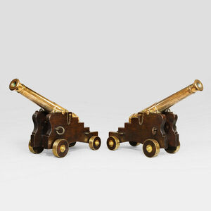 Fine pair of 19th Century English 41′ barrel bronze cannon on oak carriages