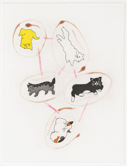 Color soft ground etching with aquatint and drypoint on gampi chine collé