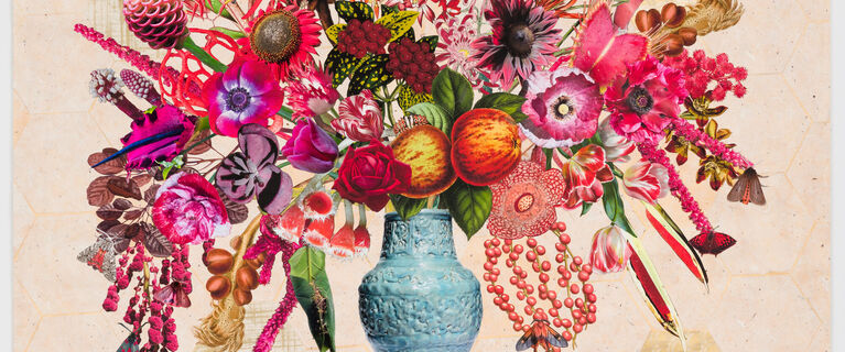 Cover Image: Jane Hammond, Seljuk Jar with Beehive Ginger, Shaggy Scarlet Cups and Tailor Bird Nest, 2024. Courtesy the artist and Berggruen Gallery.