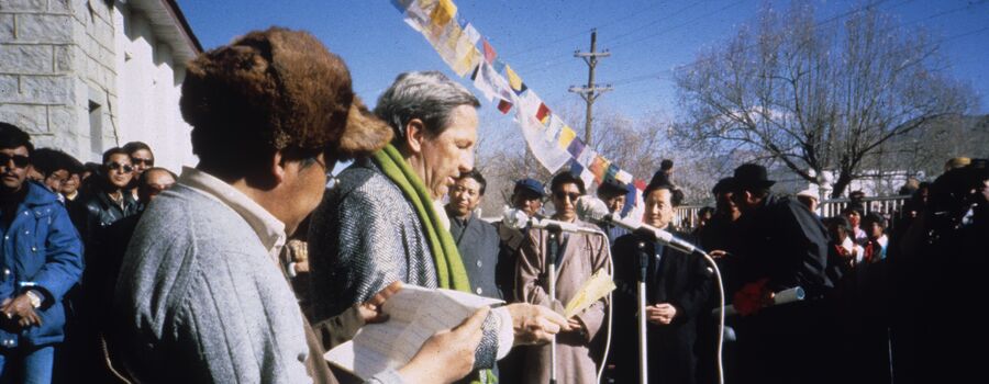 Congratulations to the selected artists: Andrew Dines, Matthew Flores, Jeffrey Gomez, Ana Lucia Romero Rivero, and Ziyang Wu! View the exhibition hereTop image: Rauschenberg and a Tibetan official at the opening ceremony for ROCI TIBET, Revolutionary Exhibition Hall, Lhasa, December 5, 1985. Photo: Thomas Buehler