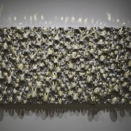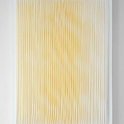 Ha Dong Chul's series of paintings bear his trademark synthesis of Western Modernism and native Korean technique. Ha used the “plucked ink line,” the age-old tool of the Korean carpenter and stonemason, to mark his canvasses with diagonal stripes.