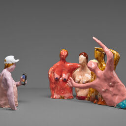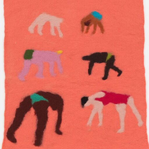 Variations of pinks of a silhouette that moves forward in a nocturnal background: Sunsetter… An enigmatic title that is rich in meaning – impossible to translate – and quite emblematic of Marlon Wobst’s new works.