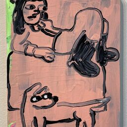 Schroeder’s exhibition comments on the paradoxical desire to escape our current political climate while also trying to mend it. His large and eye-altering canvases push the viewer to continuously find a new place to observe. The text, which Schroeder blows onto a gridded canvas us