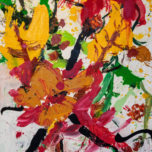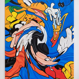 Tiina Pyykkinen creates multi-layered dimensions in which the forms disintegrate, creating a feeling of motion, chaos or simultaneity. The large-format paintings irritate the visual sense intentionally and undermine the relationship between knowledge and perception.