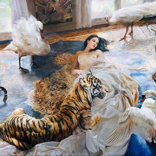 Diego Palacios (1983), a Chilean painter, began his career in 2014. Palacios discovered his own language of painting looking through glass. This distorted way of reflecting reality is Palacios characteristic touch. His paintings are like looking trough a kaleidoscope.
