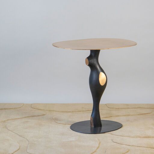 Entitled CURVES # 1 the main piece evokes the surface of a frozen wave captured in hand wrought aluminum placed in a naturally formed apse of three trees — a sculptural expression of energy flow, light, and nature. CURVES #2 and #3 will be installed in the trails.