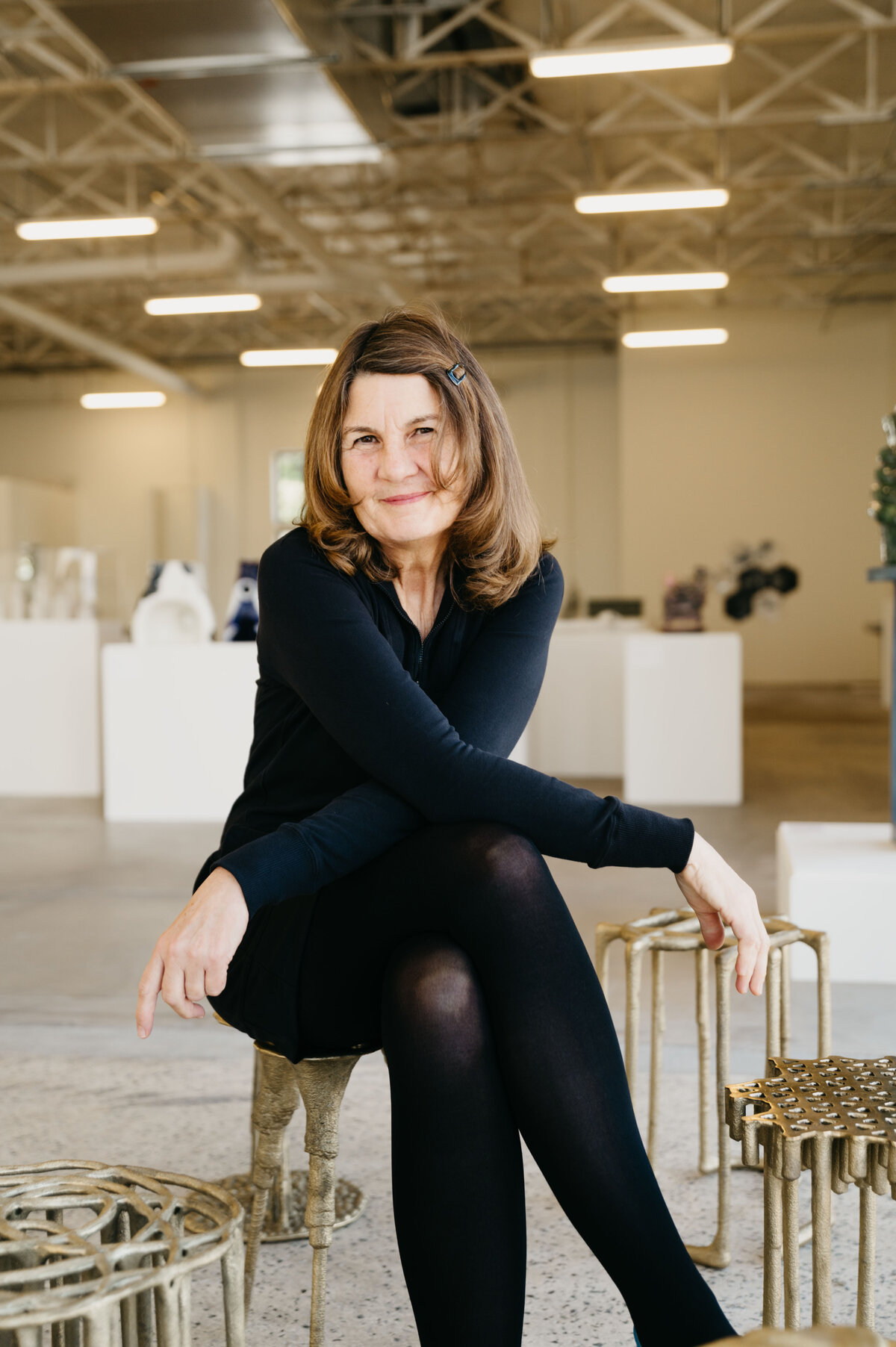 Grabner’s longstanding artistic approach centers on the aesthetic patterns and materiality of everyday domestic and functional objects. Often rooted in the intellectual foundations of fine art as well as the handmade tradition of craft, these motifs are mass-reproduced through industrial processes, becoming visually ubiquitous and culturally flattened, stripped of significance. By refiguring and recreating common everyday objects—often linked to domestic labor—using high-value materials such as cast metal and weaving, she highlights their inherent complexities and visual nuances, as well as post-industrial society’s tendency to prioritize immediacy over originality.