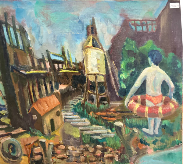 In Ruin S, Kenta Morooka captures a fragile moment where remnants of architecture meet human memory. The playful yet melancholic figure contrasts with the decaying surroundings, reflecting on themes of time and impermanence in contemporary Japanese art.