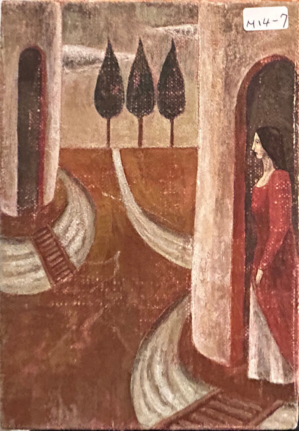 Through subtle brushwork and muted tones, Kenta Morooka depicts a contemplative figure within a timeless landscape. The delicate contrasts between stillness and motion invite reflection on inner strength and quiet resilience, showcasing the poetic depth of contemporary Japanese art.