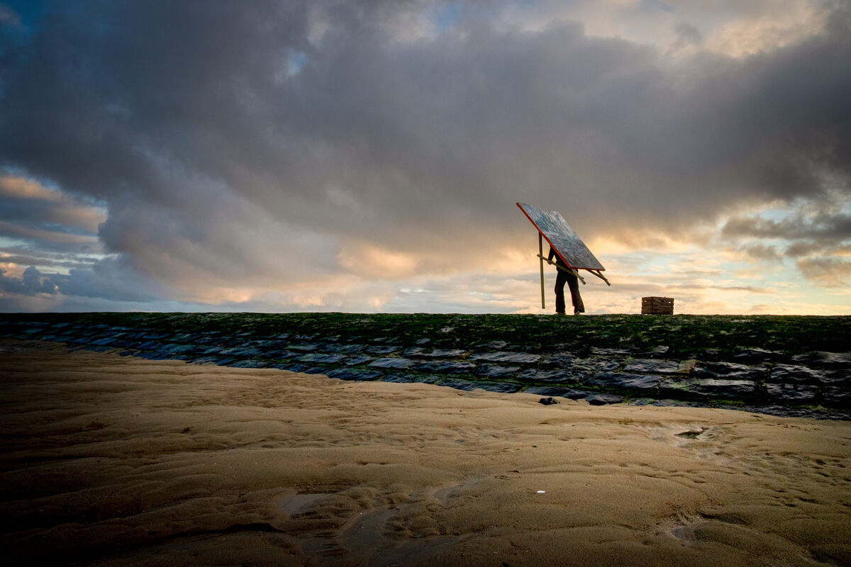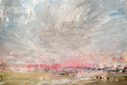 In Tidal Flux, Verkaeren redefines landscape painting as a site of ongoing negotiation—between artist and environment, gesture and condition. Working directly on the tidal flats of Knokke-Heist, he resists the idea of the landscape as static. His canvases, textured with impasto and atmospheric color, absorb the elements—salt, wind, moisture—and turn them into painterly material. Each work emerges from an embodied process of being present in the environment, guided as much by weather and chance as by composition or form.
