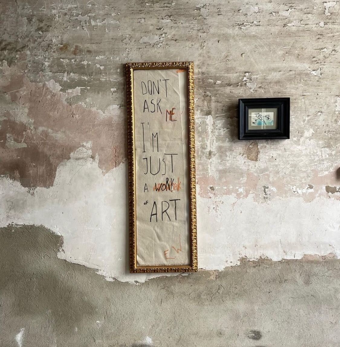 One of the most striking aspects of Warner's art is his use of language. Departing from traditional artistic mediums, he employs words as his canvas, crafting sharp and incisive texts that parody the shallow rhetoric of the virtual and advertising realms. In doing so, he challenges viewers to question the nature of reality and the authenticity of artistic expression in an age of simulation.