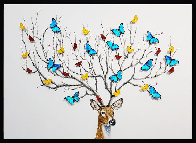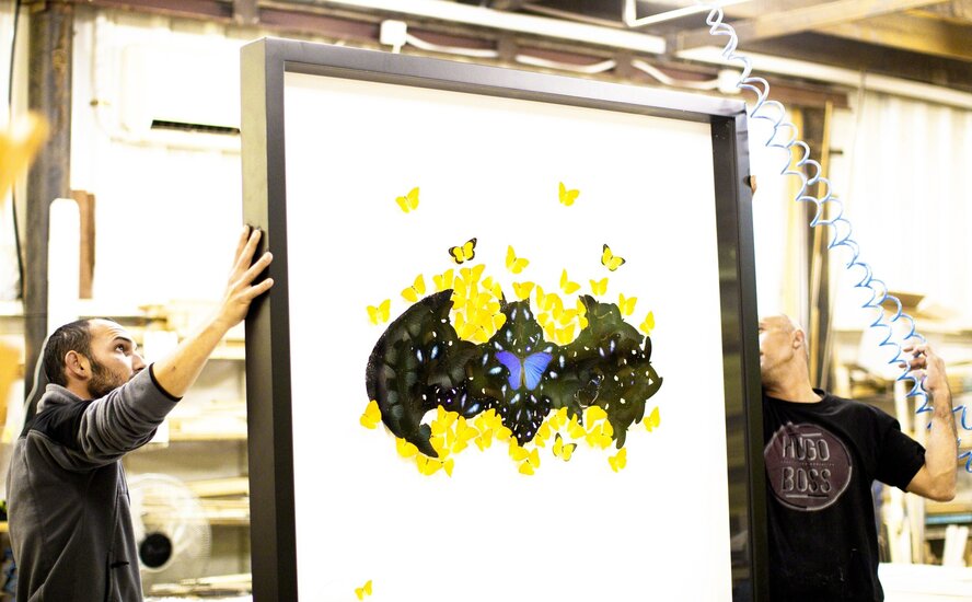 Enclosed in a wooden frame with "Optimum Museum Acrylic" which filters UV radiation and gives a clear image and glare control.