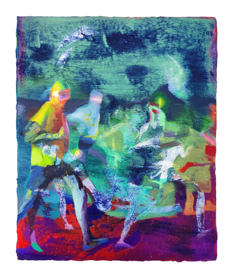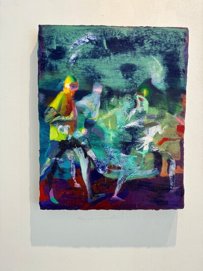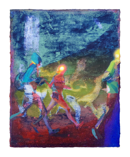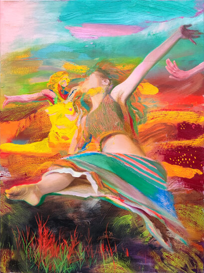 Giuseppe Gonella's paintings explore the rituals, the dreams and fears typical of modern humans and they take the viewer through dystopia and mysterious landscapes with uncertain horizons, appearing as illusions.