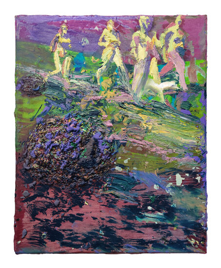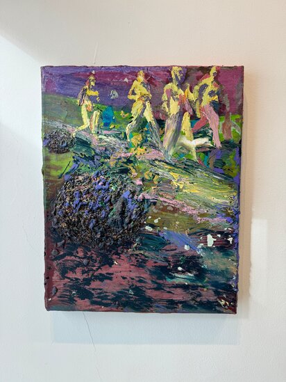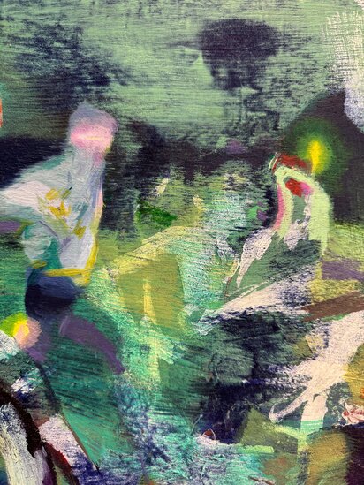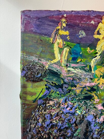 His paintings detach from the reality we see and they transform and mold memories in modern allegories.