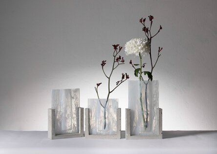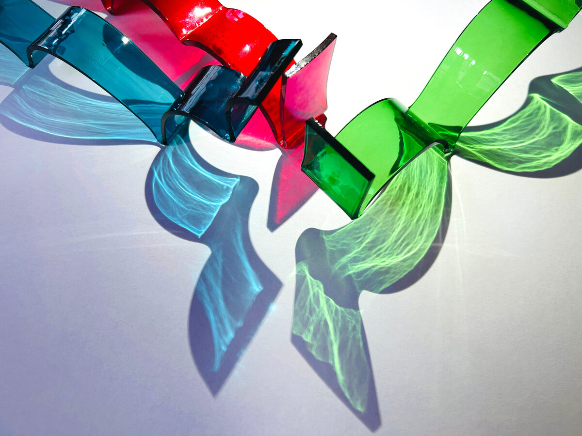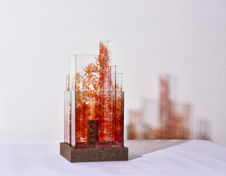 With Skyline, Aurore Bouter draws lines of light through space. These vertical sculptures in thermoformed glass are both architectural and vibrant, echoing stylized urban silhouettes. Between tension and lightness, each piece captures and refracts light, playing with transparency and density. These works engage with the contemporary landscape while asserting a delicate, luminous presence in space.