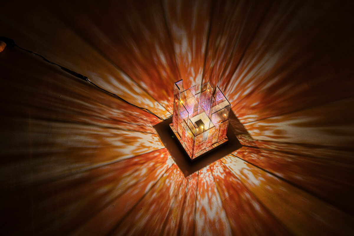 Canopée unfolds a suspended world, both vegetal and poetic. These floating glass structures, inspired by the organic architecture of forest canopies, compose an airy, immersive landscape. Aurore Bouter explores the balance between strength and fragility, verticality and movement. Here, glass becomes a living, weightless material—evoking a breath of nature at the very heart of matter.