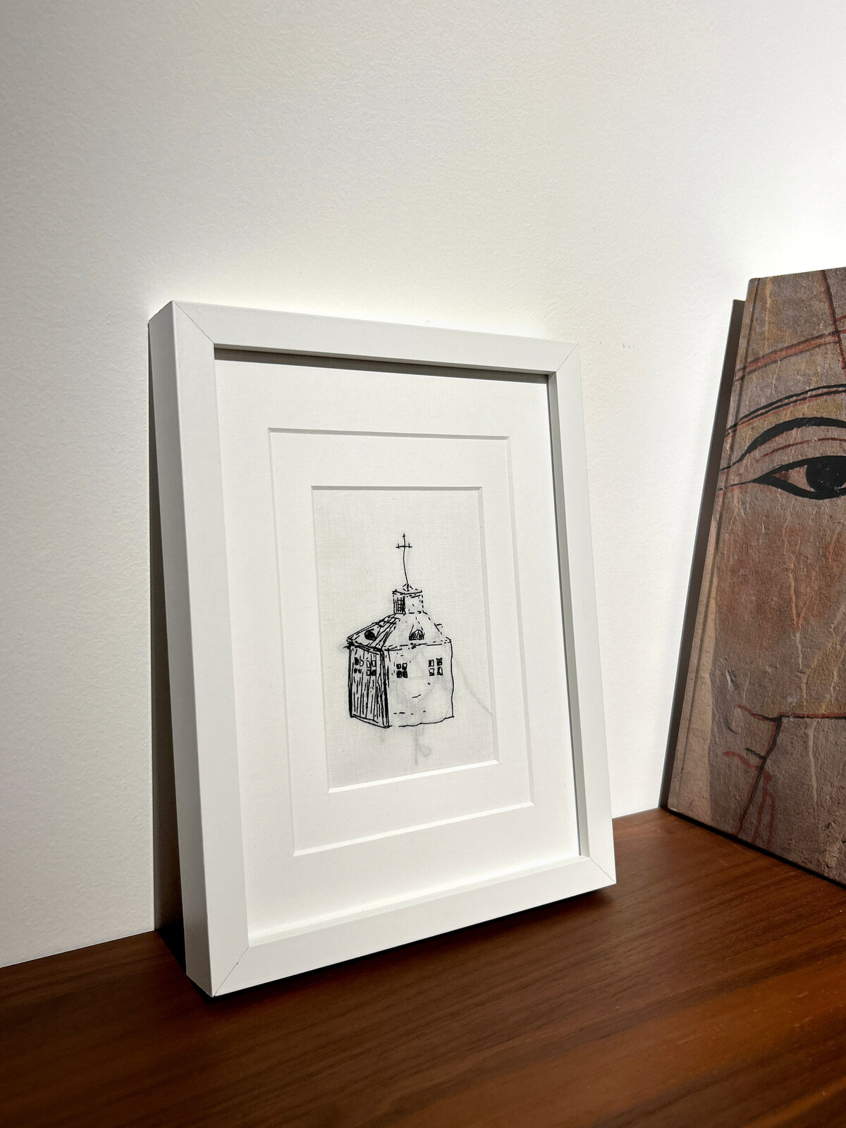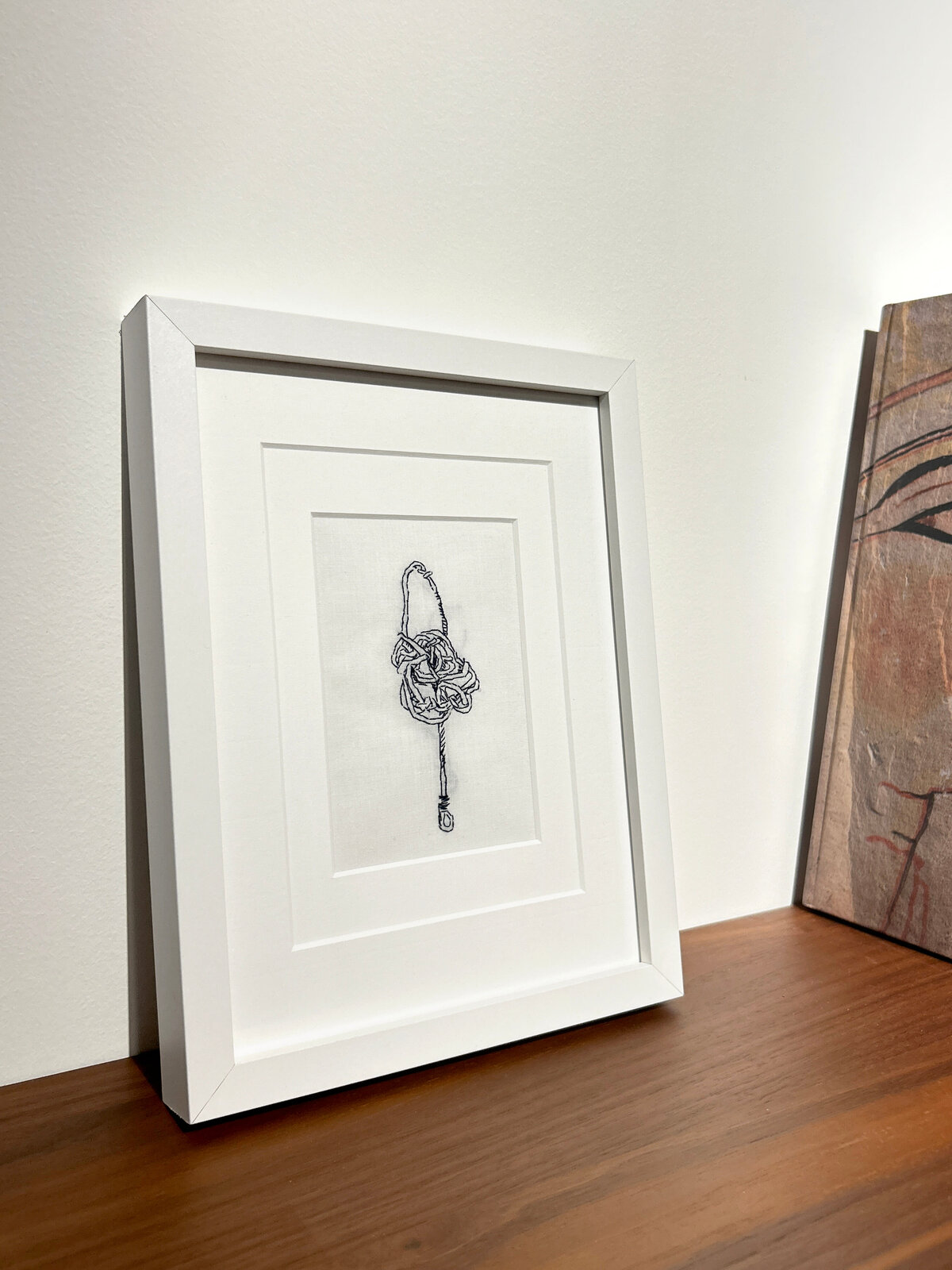 Created in the Police Museum, this work captures the tension and stillness of objects linked to justice and control. Cazaentre’s thread traces outlines of uniforms, vitrines, and gestures — quietly evocative of institutional memory.