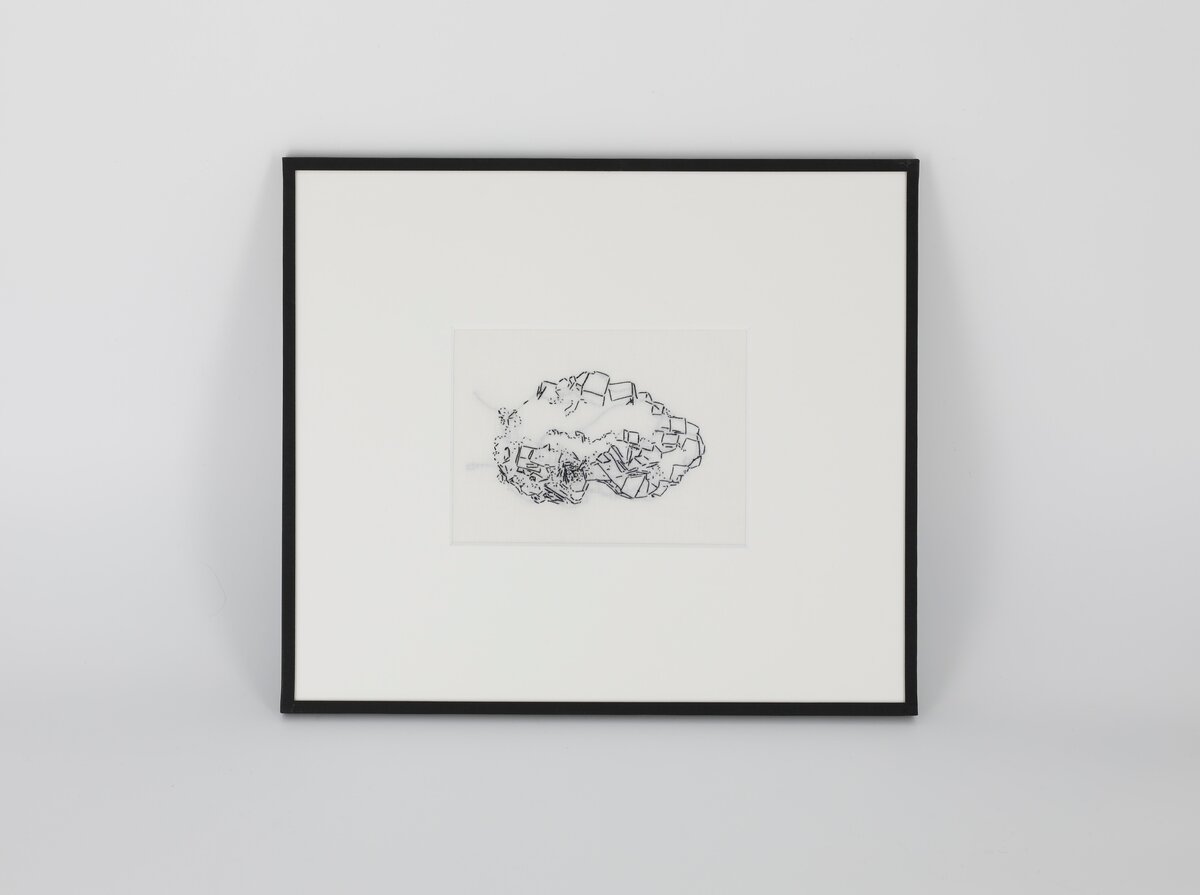 Working like a sketchbook with thread, Cazaentre’s approach combines immediacy and intuition. The result is a series of embroidered drawings that document the subtle choreography of museum spaces.