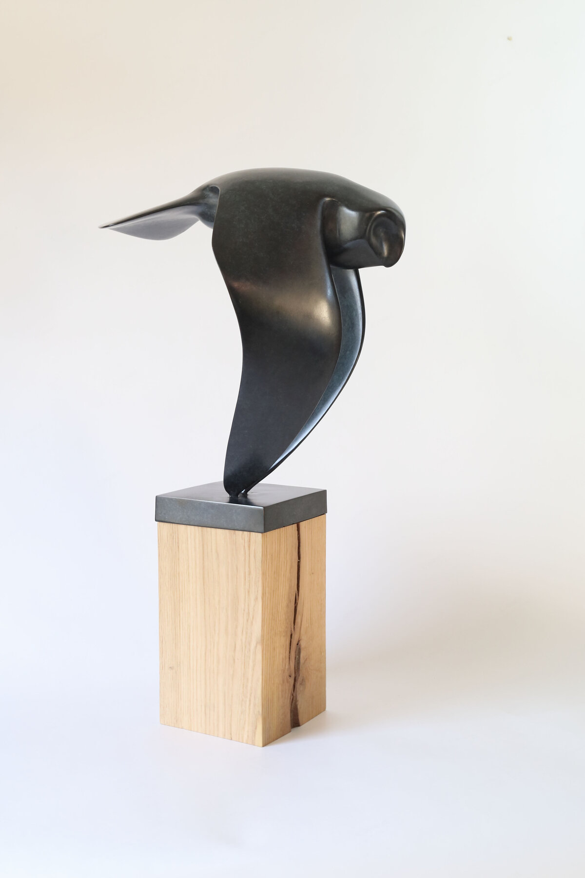 His creative process begins with stillness: observing a stance, a gaze, a wing's tremble. From these fragments of movement, Wodecki distills a form—not to replicate nature, but to translate it. His sculptures are interpretations, not reproductions. They speak softly, yet carry deep emotional resonance.