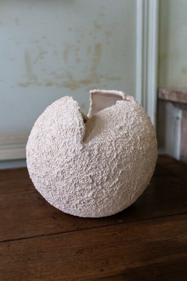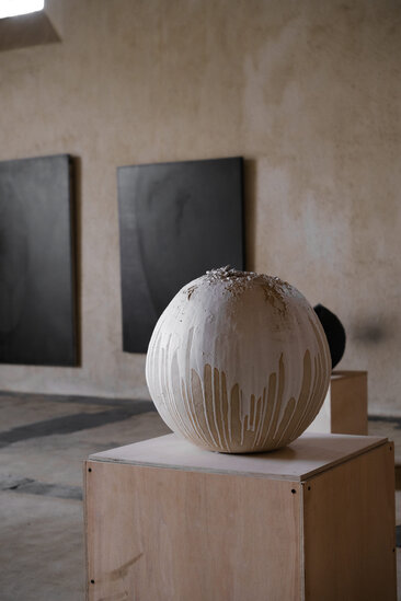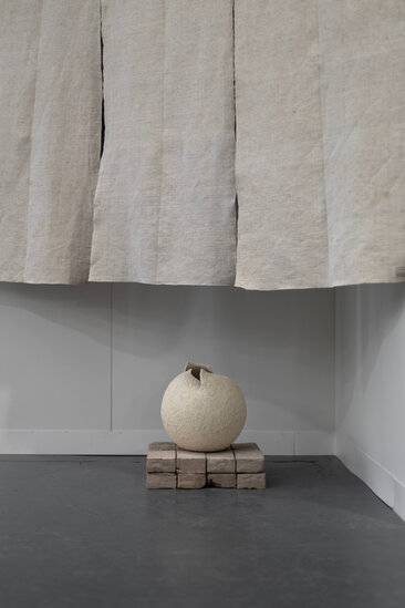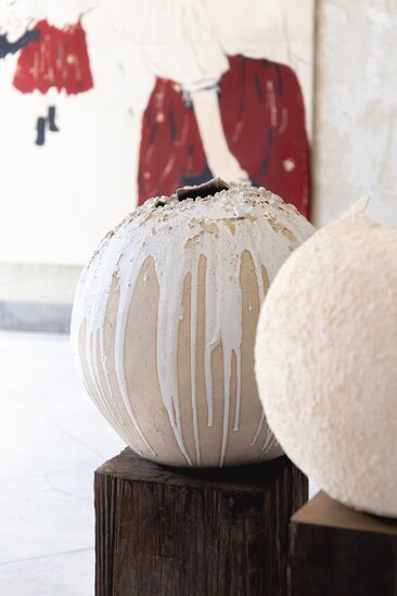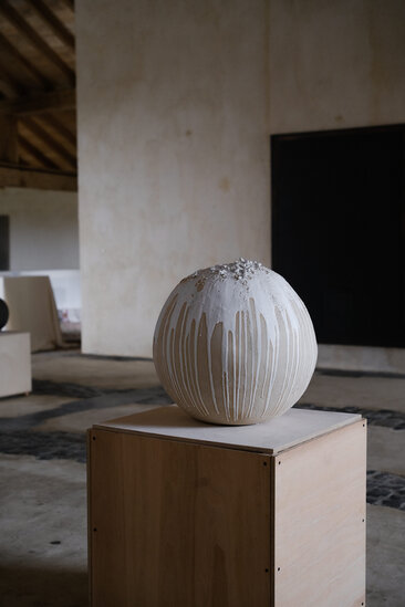 Laura Pasquino, renowned for her minimalist and tactile ceramic creations, takes a bold step in her artistic journey with her latest piece, "Temple”. Standing at an impressive height of 2 meters, this monumental work marks a departure from her usual delicate and intimate scale, embracing a more expansive and evocative approach.