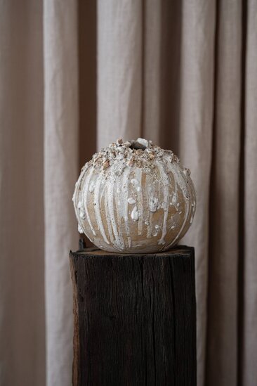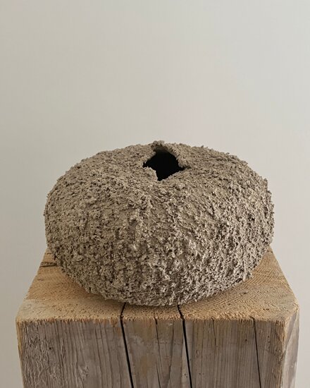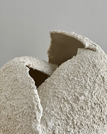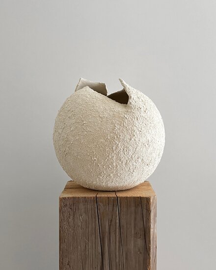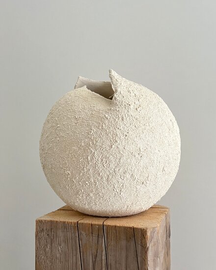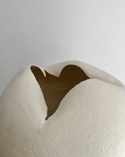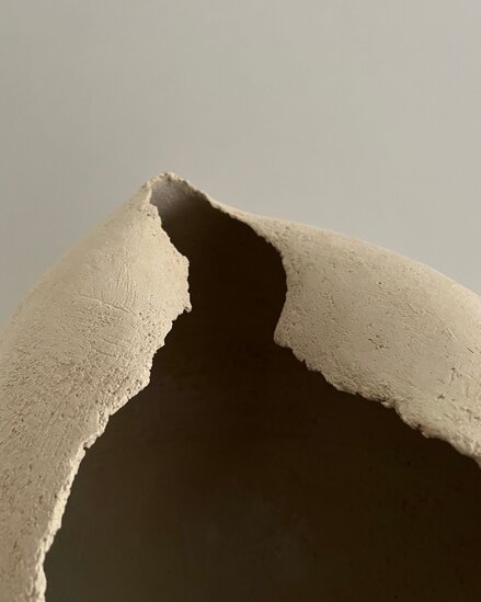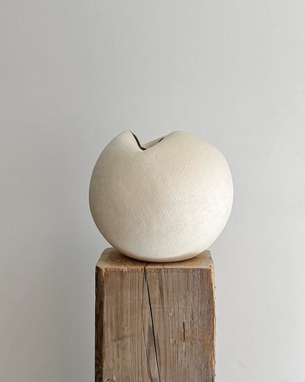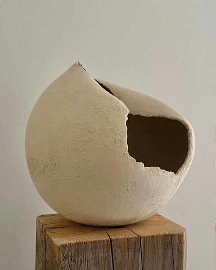 Her natural aesthetic style features minimalistic, harmonious shapes that celebrate the imperfections and beauty of simplicity. She expresses herself through the textures and organic nuances of clay, creating minimalist sculptures in pure and simple forms.