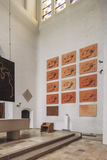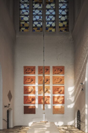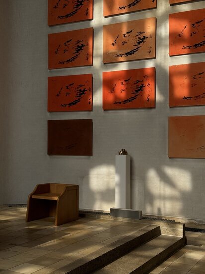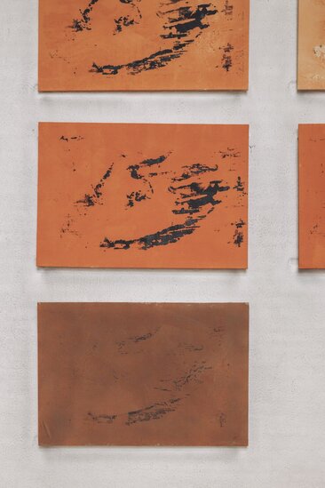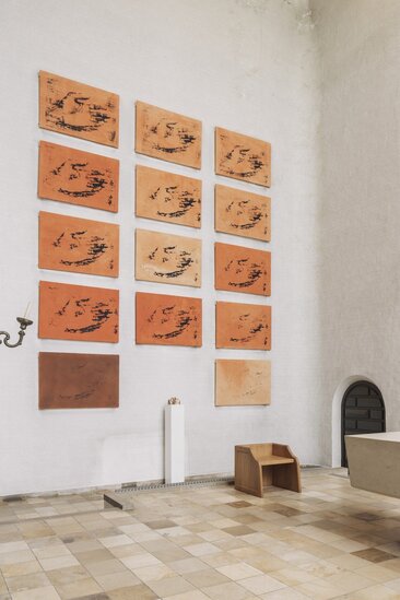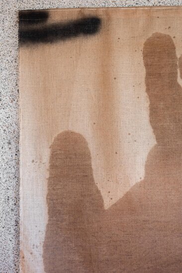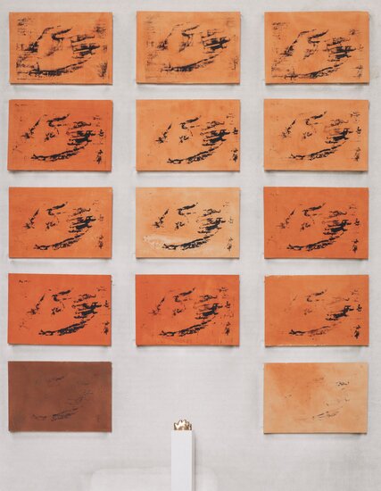 Fading Faith is a piece madeout of 14 silkscreens on canvas of 100 x 150 cm/each. Inspired by the philosophical premise that the loss of higher references has led us to an individualistic and self-centered approach, this exhibition seeks to question and explore who we really are in the absence of those ancient guides. As faith in external structures and authoritarian figures dissolves, we emerge as the protagonists of our own narrative, carrying the responsibility and weight of defining ourselves.