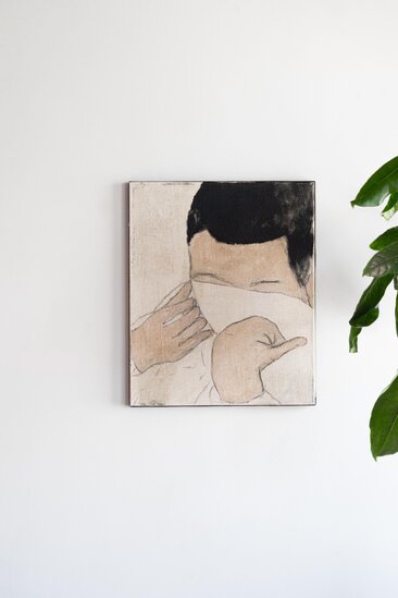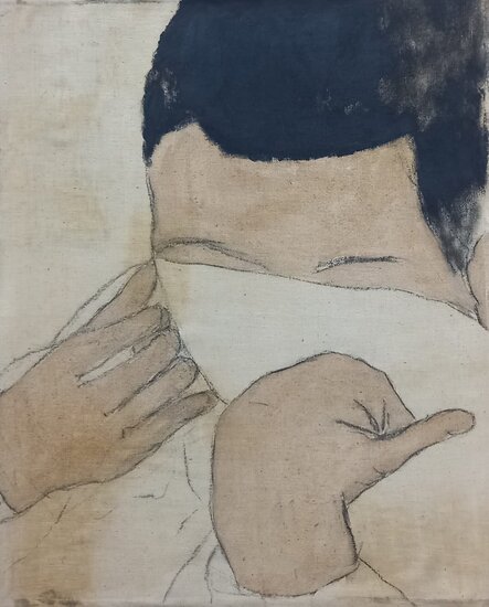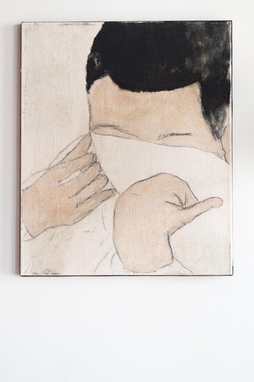 A delicate and silent portrait, 10 ans après reflects Juliette Lemontey’s ongoing exploration of memory and the invisible threads that shape us. Faceless yet intimate, the figure evokes a moment both distant and familiar — a gesture frozen in time, marked by absence and tenderness. Through subtle materials and muted tones, Lemontey invites the viewer to witness a personal history rendered universal.