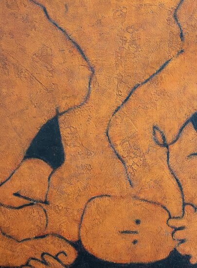 Born in 1981 in Barcelona, Chidy Wayne has established himself as a distinctive artist with a personal, minimalist, and figurative painting style. His creations, characterised by a primitive and minimalist nature, draw inspiration from both ancestral traditions and the avant-garde art scene. Through quick and bold strokes, he tackles universal themes, exploring self-awareness and internal conflict in his two main series, EGO and PUGNA, which reflect his combative spirit.