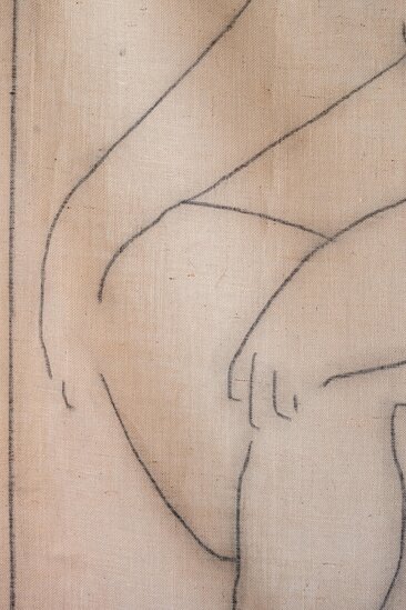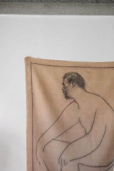 Dit textielkunstwerk van Chidy Wayne gaat in gesprek met Picasso’s beroemde tekening, “Mujer desnuda de flores”. Door deze dialoog verkent Wayne de dualiteit tussen innerlijke strijd en uiterlijke schoonheid, en nodigt hij toeschouwers uit om na te denken over de continuïteit en breuk van artistieke en culturele invloeden.