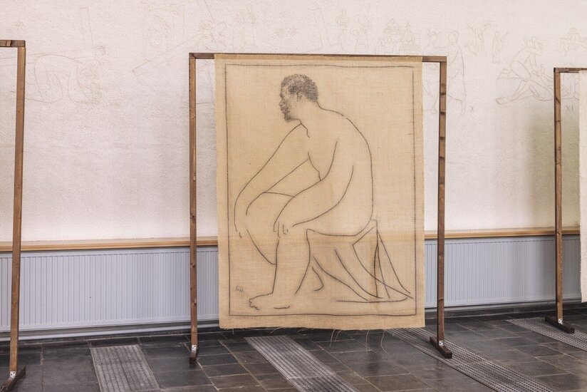 This textile artwork by Chidy Wayne engages in a dialogue with Picasso’s famous drawing, “Mujer desnuda de flores”. Through this conversation, Wayne explores the duality between inner struggle and outer beauty, inviting viewers to reflect on the continuity and rupture of artistic and cultural influences.
