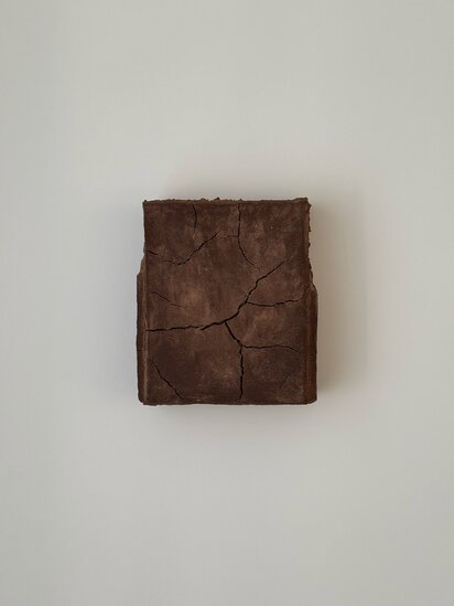 Roan’s creative process is both physical and meditative, using his hands as the primary tool to shape the materials. His technique allows the natural substances to determine the direction of cracks and variations, resulting in unique compositions that reflect a deep connection to the natural environment. His works explore how color influences our perception of landscapes and nature in its various forms.