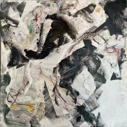 "Gawain and the Green Knight" features dynamic layers of oil paint that seamlessly blend the intensity of gestural abstraction with the luminous qualities of gold leaf. Bold black strokes provide structure, contrasting with delicate washes of color. This dialogue between dark and light, heavy and light, embodies the narrative tension of the Arthurian legend of Sir Gawain and the Green Knight.