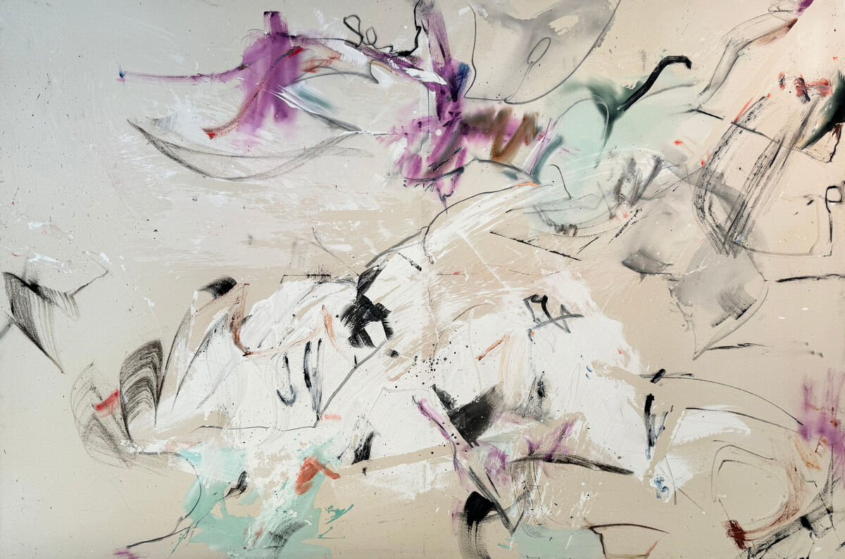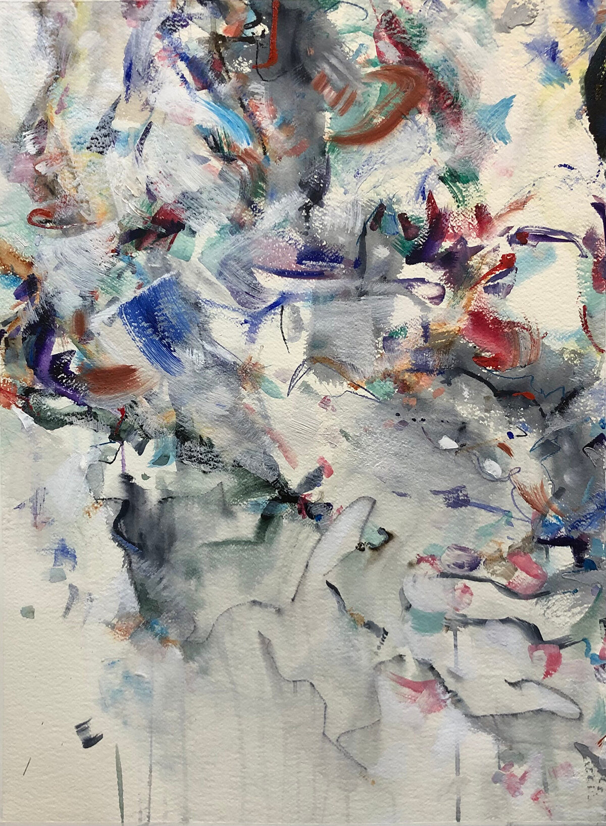 "Paper Monkey Puzzle" features a vibrant interplay of colors and textures. The fluidity of the oil paint on paper creates a sense of movement and depth, inviting viewers to explore the intricacies within the composition. Bold, sweeping strokes are interspersed with delicate washes of color, creating a harmonious balance that draws the eye across the entire surface.