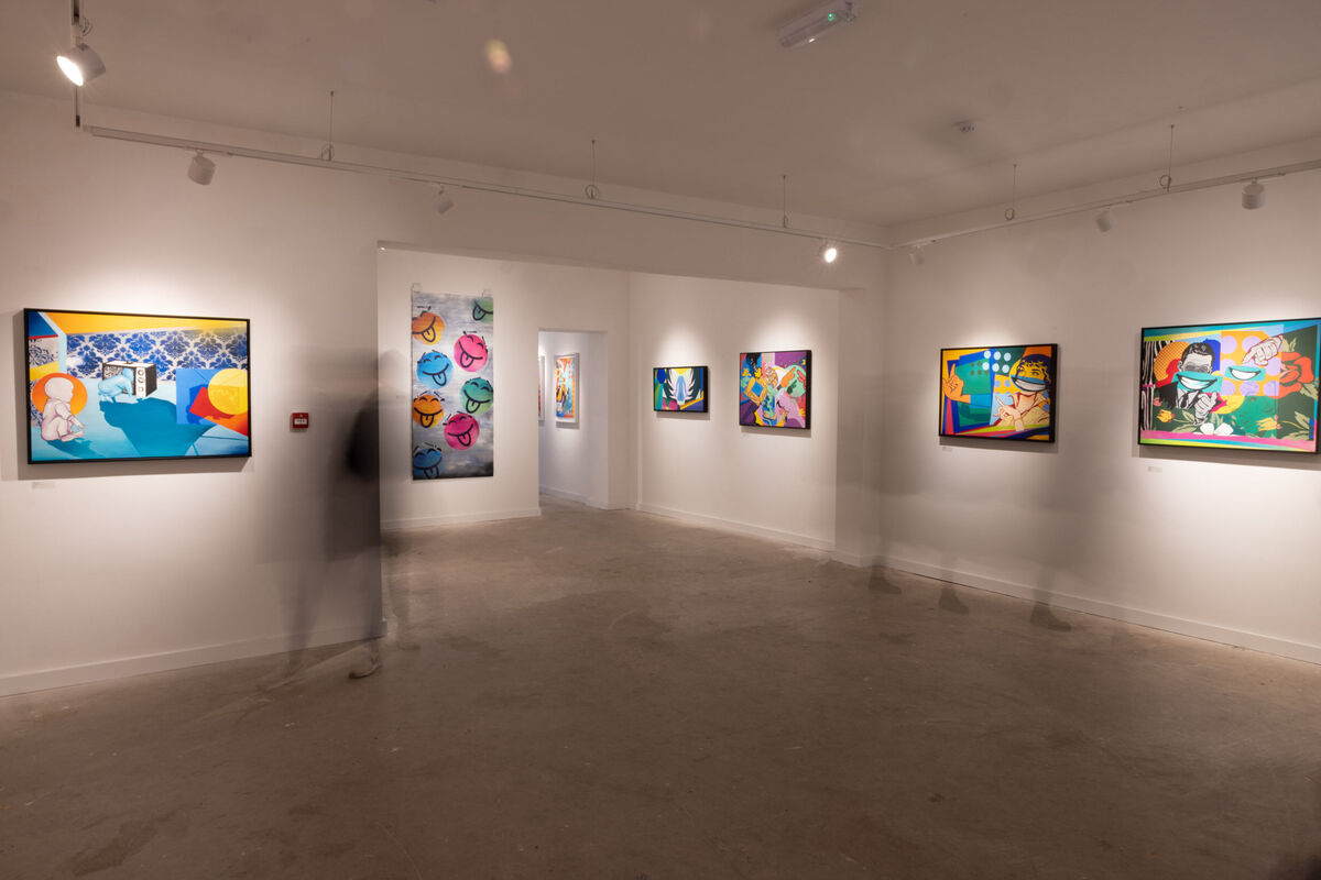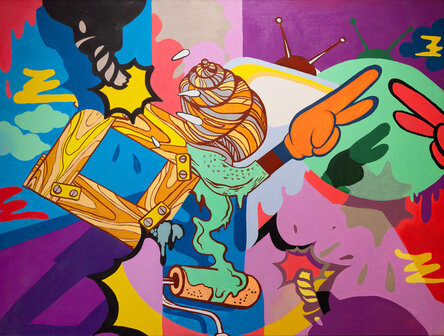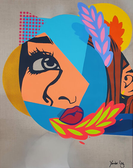 Xander Coy's artwork is a masterful blend of carefully composed collages painted through a Pop Art lens. His paintings are built up with a combination of figurative and geometric shapes, creating loose narratives that invite viewers to remake or reimagine the world presented to them. Each piece encourages the audience to connect the dots, using their own imagination to give meaning to the piece.
