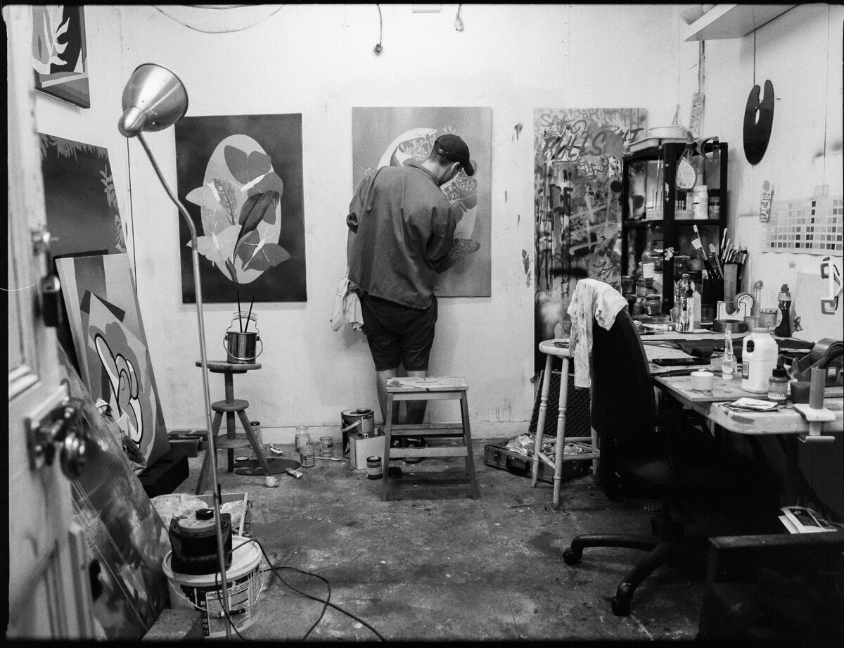 Xander working on a piece in his studio in London.