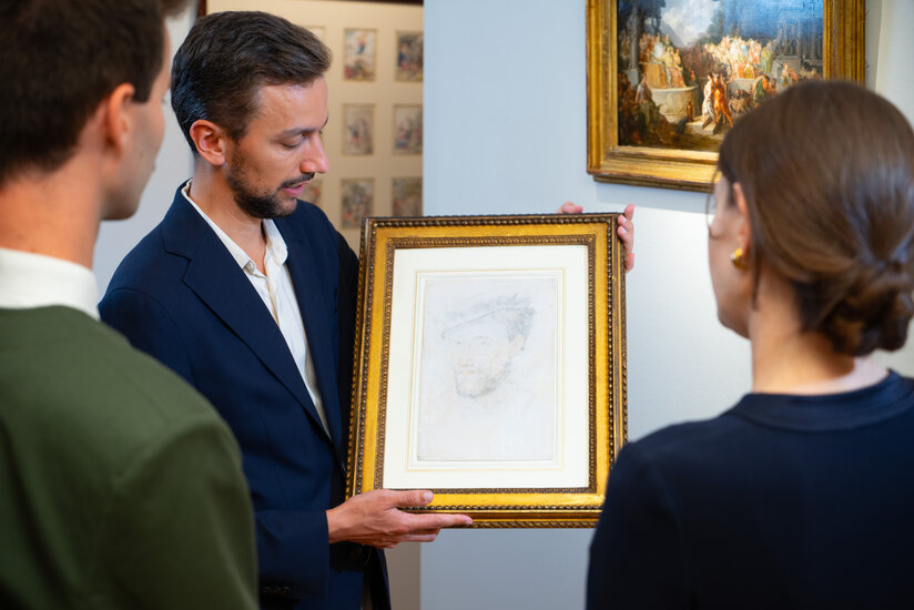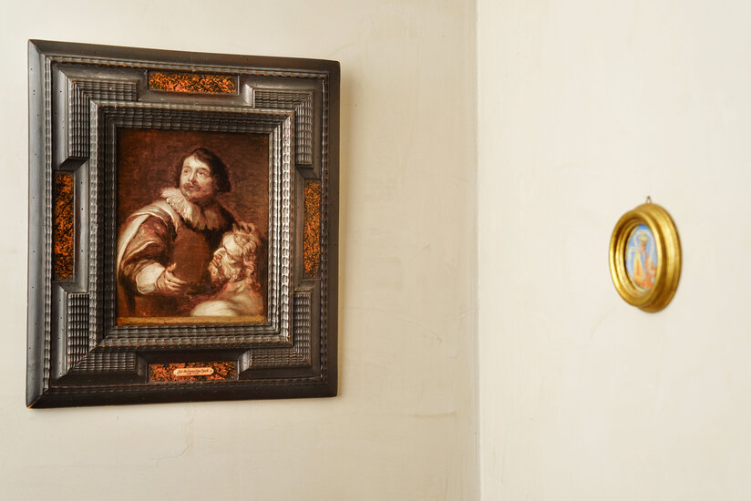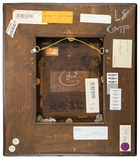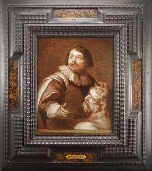 A few copies of Anthony van Dyck's Portrait of Andries Colijns de Nole are known: the catalogue raisonné (see Literature) lists three copies including one previously in the collection of the dukes of Bedford which was confused, first by Sotheby's, then by Christie's (see Provenance), with the present panel. The delicate brushstroke, the clever interplay of tones, between grisaille and brunaille, as well as some details of the sculptor's face seem to be especially close to the Portrait of Andries Colijns de Nole housed in the Mauritshuis (The Hague), a copy that is not listed in the catalogue raisonné.