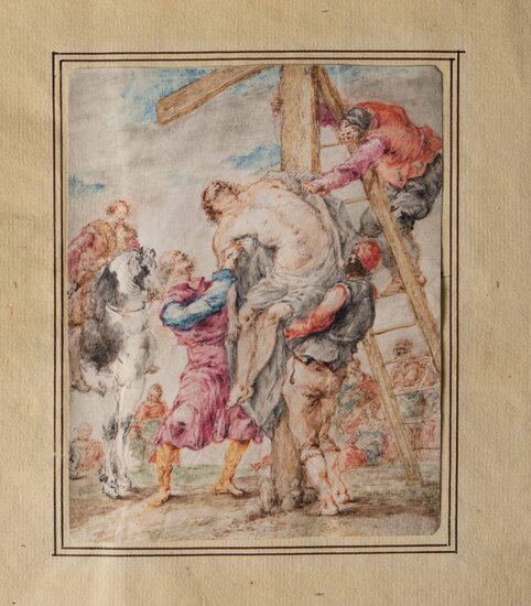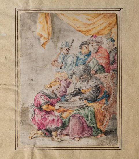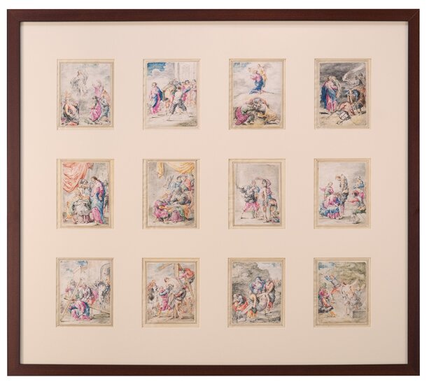 Leonaert Bramer stands out as a remarkable and intriguing figure among the painters and draughtsmen of the Dutch Golden Age. Early in his life, he traveled extensively to France and Rome, earning the nickname "Leonardo della Notte" for his night-themed paintings. Upon returning to Delft in 1628, he joined the Guild of Saint Luke and formed a close relationship with the renowned Johannes Vermeer. An archival document from April 4, 1653, reveals that Leonaert Bramer visited the mother of Johannes Vermeer's future wife, Catharina Thins, advocating for their marriage. This has led to speculation that Leonaert Bramer may have been Johannes Vermeer's teacher, though no concrete evidence supports this claim. The current collection of twelve watercolors embodies the distinctive style of Leonaert Bramer. His brushstroke is energetic, his palette is vibrant and his use of light and shadow expressive, creating dynamic compositions. Additionally, the watercolors have a notable provenance. Mounted on laid papers featuring the Hollandia watermark from the 18th century, each piece bears the artist's name, "Leonaert Bramer", and annotations identifying the subjects and corresponding gospel chapters and verses. Originally, these twelve pieces were part of a larger set that included at least three other known watercolors (see Watercolors from the same set, below). In the 19th century, René della Faille de Waerloos likely owned fourteen of these watercolors, which were sold in 1904 after his death. In 1968, the collection passed through C. G. Boerner in Düsseldorf before being acquired by David Carter, former director of the Montreal Museum of Fine Arts, and his wife Louise. The Carters, who owned a significant art collection, lent these watercolors for two exhibitions.