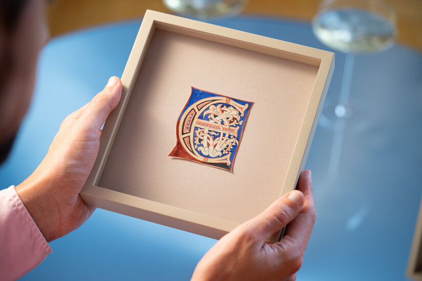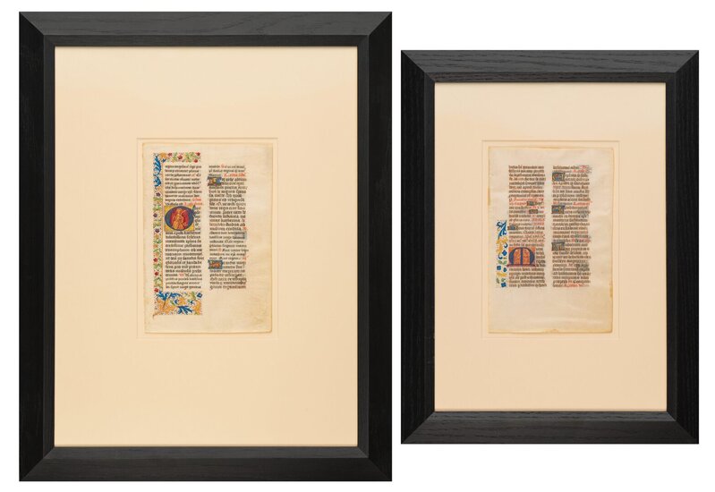 This large and richly illuminated initial letter H comes from a gigantic Bible, a so-called 'Bibbie Atlantiche' (in reference to the mythical creature that supported the sky) or 'Atlantic Bible' (in reference to the size of the Atlantic Ocean). This type of Bibles began to spread in Rome at the end of the 11th century and then expanded throughout Italy, especially Florence, during the 12th century. Through their enormous size, they meant to represent the extreme importance of the text as well as of the donor. Only a few Atlantic Bibles have survived to this day, and the pages or initials from this type of manuscript are extremely rare. The Bible from which our initial comes from is unidentified, but two other initials from the same Bible are known. Moreover, the present initial H comes from three major collections: the Arnold J. Mettler collection, whose manuscript and rare books collection was one of the most impressive, the Cornelius J. Hauck collection, whose sale is still to this day one of the most important in the history of bibliophilia, and the Robert McCarthy collection, which still constitutes an extremely important collection of medieval art, especially miniatures.