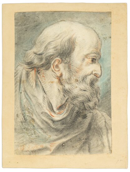 Born into a modest family, Joseph-Marie Vien began his apprenticeship with various painters before joining the Académie royale in Paris in 1740. A pupil of Charles-Joseph Natoire and influenced by the Comte de Caylus, he won the Prix de Rome in 1743. During his early years, the artist was criticized for his overly simple, realistic style. However, he managed to make a name for himself and was finally admitted to the Académie royale in 1754. Joseph-Marie Vien acquired an honorable status, thanks in particular to commissions from Mme de Barry, and founded a school where he trained many students, including the famous Jacques-Louis David. In 1775, the painter was appointed director of the Académie de France in Rome, then, in 1789, first painter to the king. When he died in 1809, Joseph-Marie Vien was given a state funeral at the Panthéon: he is the only painter to be buried there. With an expressive pencil stroke characterized by almost nervous hatching, the present drawing is a great example of the mastery of gesture. With a simple, effective composition, the artist, who may have left his signature on the lower left (J Vien F?), shows us here a "Portrait of an old bearded man" in profile, perhaps a preparatory study for a figure that remains unidentified.