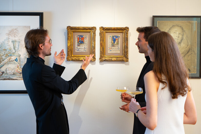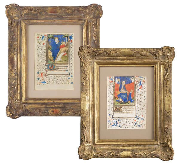 Our two illuminations come from a well-known Book of Hours named the ex-Boerner manuscript after its presence in a Boerner sale in Leipzig. This Book of Hours was recently renamed Thouroulde Hours, in reference to the Thouroulde family, for whom the Book of Hours appears to have been made. Extensive research into the provenance of the manuscript has allowed us to trace its history precisely. In 1937, the Book of Hours' seventeen illuminations were dispersed, and some of them are now located, including the Visitation which is preserved at the Museum of Fine Arts of Stockholm. The rediscovery of these two illuminations is significant for the history of French illuminations and testifies to the expressive and inventive style of the Master of Rohan. Our illuminations show great stylistic similarities with other works attributed to this artist, notably the Book of Hours preserved in Cambridge (Harvard University, Houghton Library, ms. Richardson 42), a magnificent Book of Hours attributed to the Master of Rohan and his workshop.
