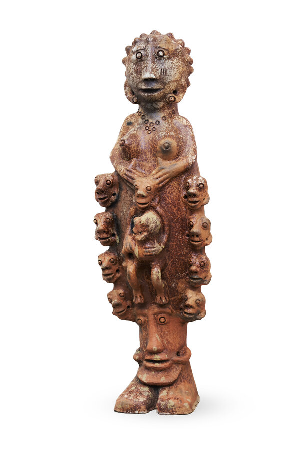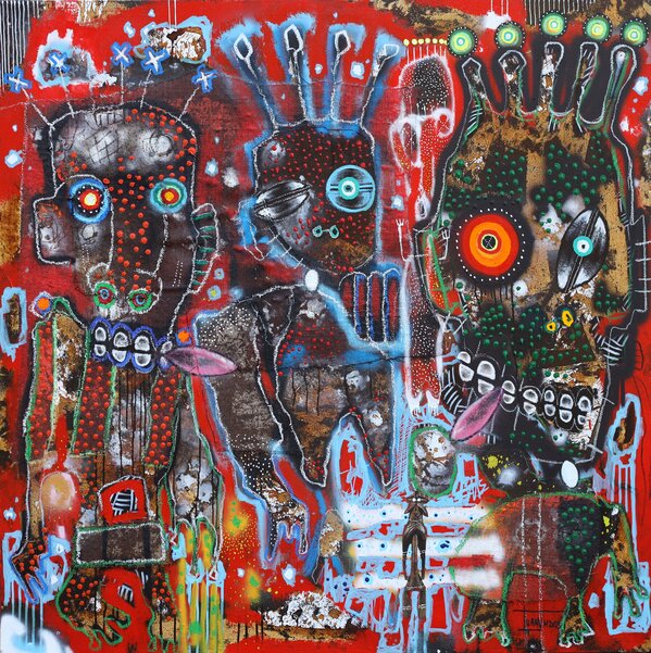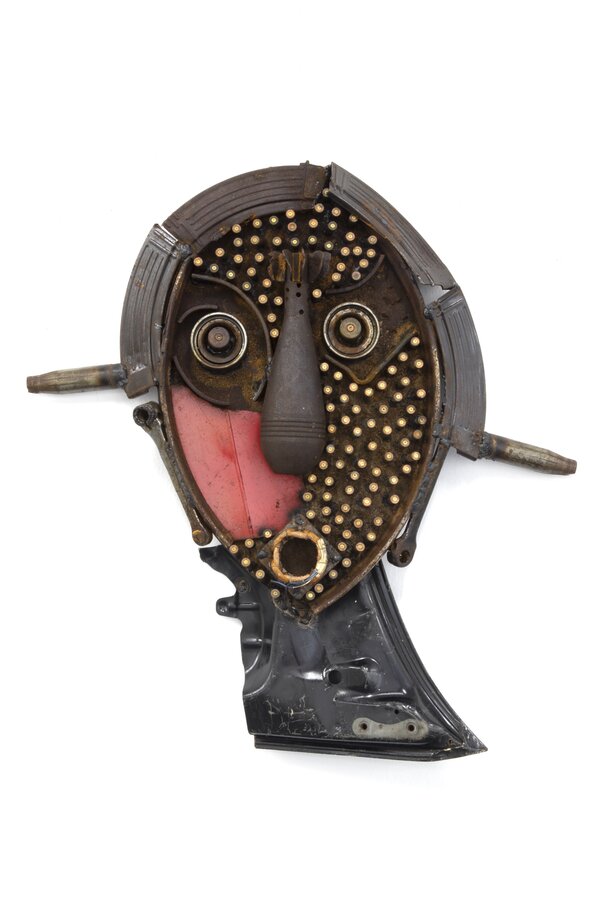 Mabunda converts dismantled war materials that were in use during the long and bloody civil wars – 16-year – that affected his country (Mozambique). The artist appropriates of all kind of war waste -bullets, bombs, files- and then assembles them with the final shape of masks and thrones.